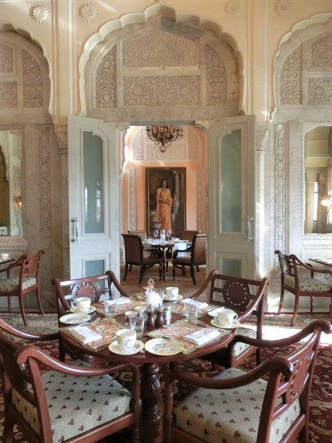 インドのラジャスターンで泊まったランバークパレスのレストランを思い出す構図だったのです。