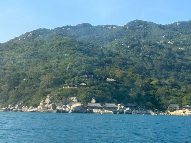 熱帯雨林の山を背にしたシックスセンシズ ニンヴァンベイに到着。