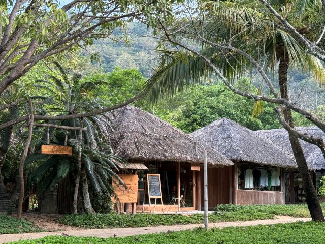山の中にたつ小屋や岩の上にあるヴィラ群が見えてきたら、ジェッティーはすぐそこ。