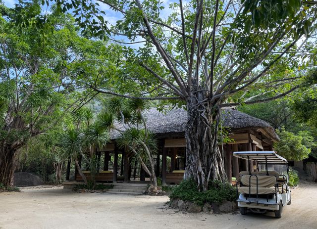 バギーで辺りを紹介してもらいながら、お部屋へと案内してもらいます。