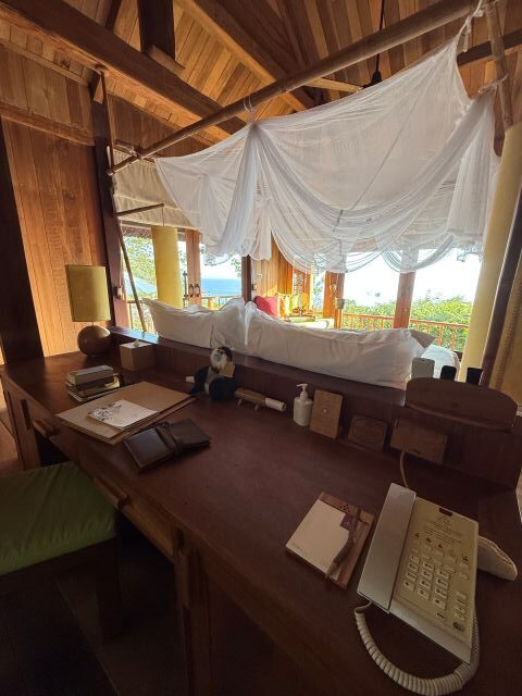 ベッドの後ろがデスクで、クロアシ ドゥク ラングールのぬいぐるみが置いてありました。ダナンのインターコンチネンタルでも同じようにアカアシ ドゥク ラングールのぬいぐるみがギフトショップに置いてあって、買おうか迷って結局買わなかったのですが、今回は連れて帰りました。