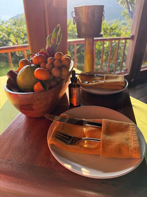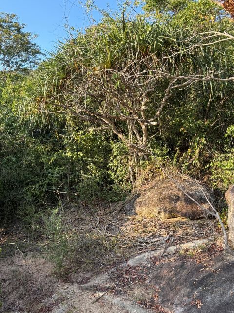 シャワー横の窓からは野生のパイナップルの木が見えます。←ラングールの好物ね!