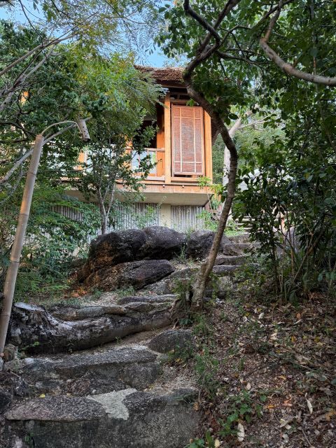 チェックイン後、バトラーさんの運転するバギーはヴィラへの階段でストップ。