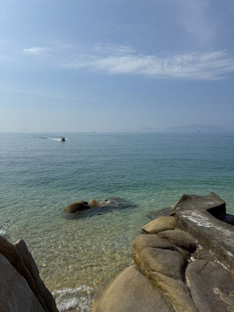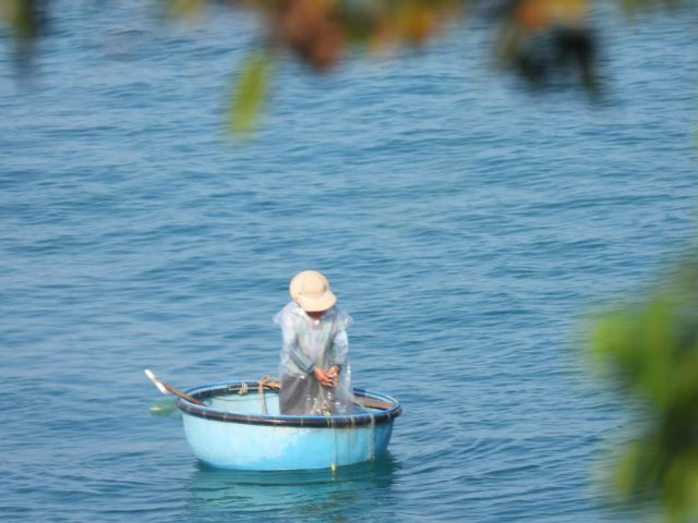 海をよーく見たら、魚釣りをしているフィッシャーマン発見。お椀型のトラディショナルなボートはホイアンなどで、ツーリスト達の格好のアクティビティーになっているけれど、未だに彼らは日常に使用しているのですね・・・・