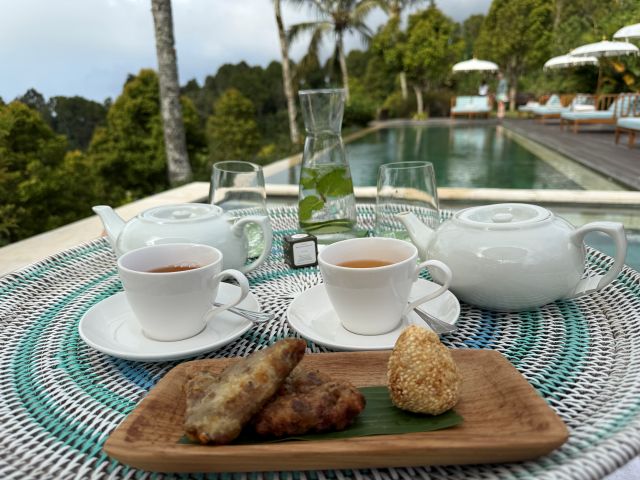 2日目のアフタヌーンティーはプールサイドにて。