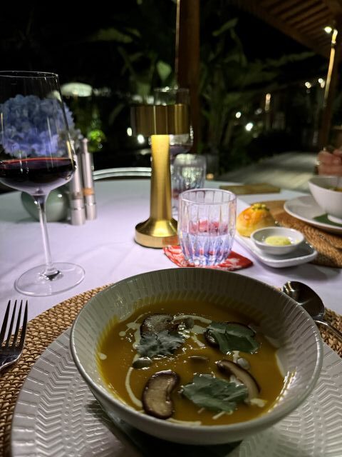 標高の高いムンドック地方は夜は冷える。メニューにあったかぼちゃのスープを二人でオーダーしたら、これがとっても美味しい!日本のかぼちゃみたいな味がするのです。ソテーしたキノコも良いアクセント