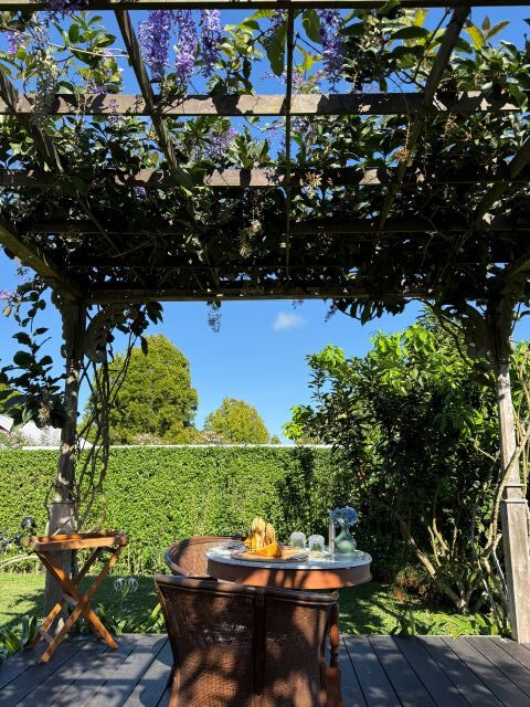 もしくは、藤棚の下にも2つテーブルが用意されているので、空いていればこちらでもOK