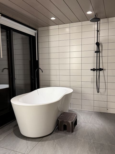そして、こちらはのバスは客室半露天風呂になるよう。夏には窓を開けてお風呂に入れるみたいです。