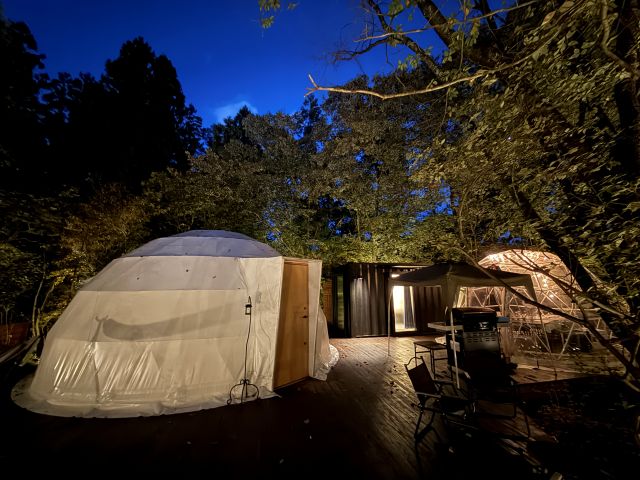 今宵は中津川グランピング森の空で森の中でのテント泊。
