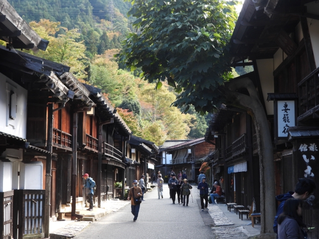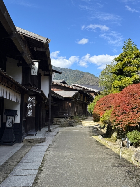 以前に行った奈良井宿ほどではないにしても、山の紅葉と古民家が美しい宿場町