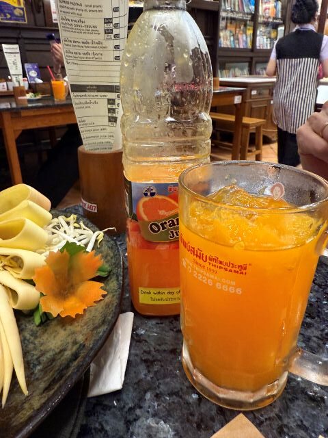 私はタイミルクティーを飲んだのだけど、Benoitと友達は人気のオレンジジュース。果実がゴロっと入っていて、甘くて美味しいらしい。