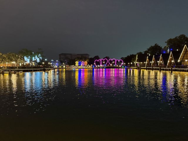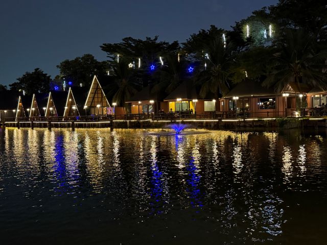 小さな湖を囲む様にあるブンヤイと言う店。すでに2026の文字があって年越し用意早すぎ(12月上旬だよ)