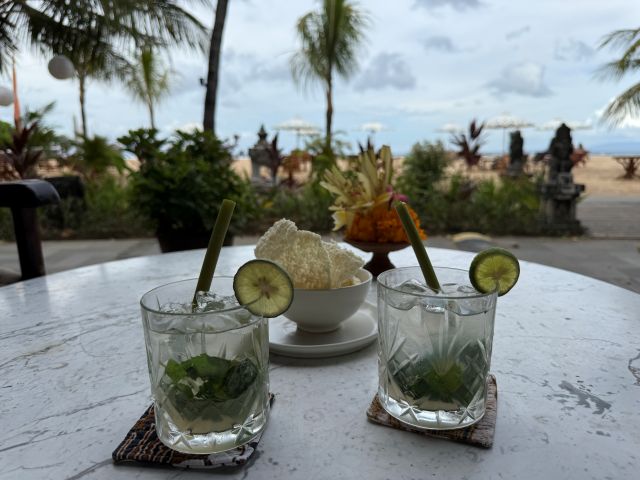 静かなサヌールのビーチに面したバー&レストラン
