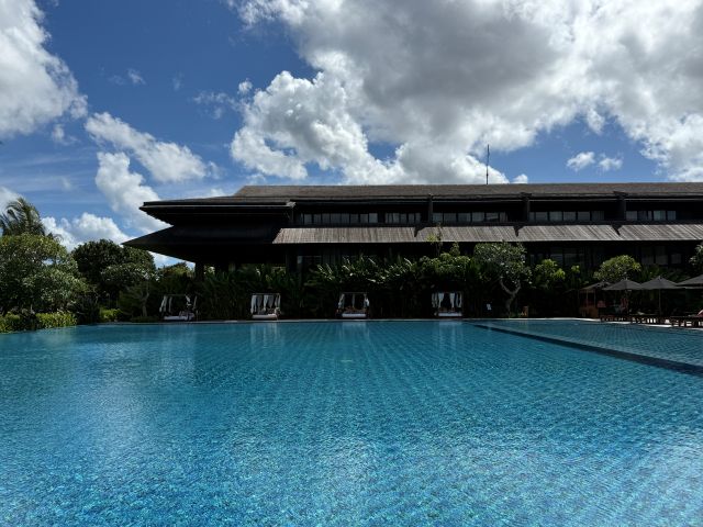 ホテル裏手にはインターナショナルな病院があって、国内の富裕層がシンガポールなどの他国に医療目的で行くのを国内誘致する目的もあるらしく、国際会議場、最先端医療施設、観光とビジネスが融合する複合エリアの中核となるサヌール経済特区として新たに再生された場所。