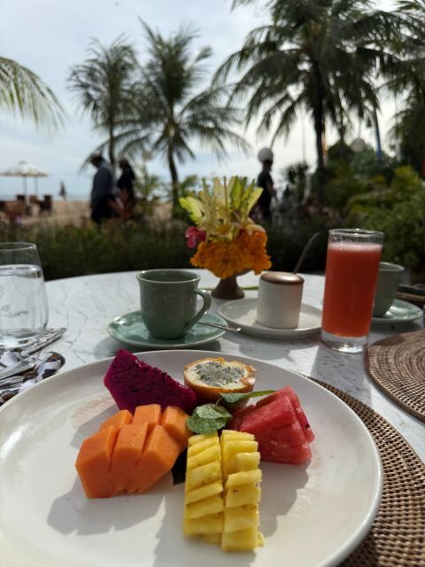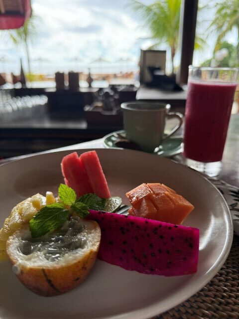 朝ご飯はディナーと同じビーチフロントのレストランにて。