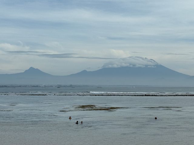 そして、26日の朝はビーチからアグン山の頂が微かに見えた